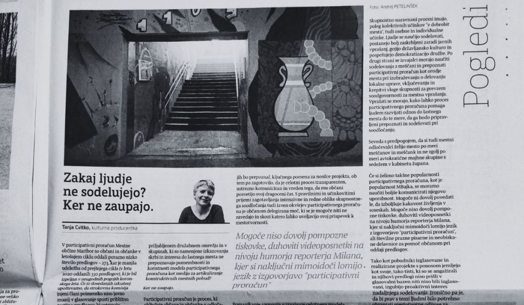 Pomanjkanje zaupanja v izvajanje celotnega modela participativnega proračuna, od oddaje predlogov do izbranih predlogov za glasovanje in izglasovanih predlogov do občinske realizacije projektov ter transparentne komunikacije učinkov z javnostjo spodbuja pomisleke glede uporabne vrednosti projekta. Zaupanje v proces bi nedvomno ojačalo vključujoče sodelovanje z nevladnimi organizacijami, ki zaznavajo smernice razvoja.